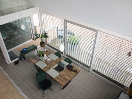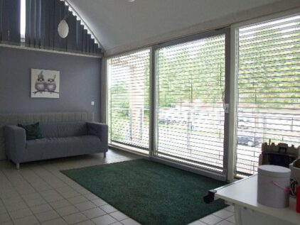 - Große Fensterfronten mit teilweise elektr. Rollos