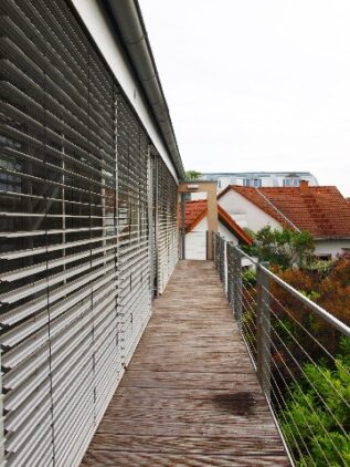 Diese exklusive, wunderschöne, gerade neu renovierte (2022) mit großen Fensterfronten lichtdurchflutete und wohl einzigartige Maisonettte-Wohnung (OG - DG) liegt in Bestlage im gesuchten Schälzig-Wohngebiet in unmittelbarer Wald- u. Feldnähe in einem wunderbaren Architektenhaus. Über den eigenen Eingang erreicht man das OG. Von hier aus hat man zur rechten Hand das Arbeitszimmer, zur linken Hand betritt man das Esszimmer - von beiden Zimmern hat man jeweils einen Balkonzugamng (Vorne). Vom Esszimmer geht es in die Küche (vermietet wird ohne EBK - die jetzige ältere EBK kann kostenfrei übernommen werden vom Vormieter), welche u.a. sogleich als Durchgang zu dem Wohnzimmer dient. Das große Wohnzimmer besitzt den Balkonzugang zu dem größten 3ten Balkon, welcher nach Hinten mit Blick ins Grüne liegt. Desweiteren hat man von hier Zutritt zu dem Schlafzimmer und über eine Treppe Zugang zum DG und zur offenen Gallery mit Blick in die untern Wohnräume. Im DG liegt auch das Kinderzimmer. Das Tageslichtbadezimmmer mit WC Dusche und Badewanne, das innenliegende Gäste WC sowie eine Abstellkammer mit Waschmachinenanschluss, Garderobe und einem begehbaren Kleiderschkrank liegen im OG und sind mit praktischen Einbauschränken ausgestattet. Direkt vor dem Haus befinden sich 2 PKW Stellplätze (zzgl. insgesamt 100,- Euro). Desweiteren eine in unmittelbarer Nähe liegenden Einzel- Garage (zzgl. 100,- Euro).